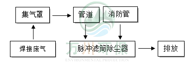 工程師根據(jù)現(xiàn)場(chǎng)焊接煙塵性質(zhì)粒徑、現(xiàn)場(chǎng)工況等因素考量,故采用脈沖濾筒除塵器作為處理設(shè)備