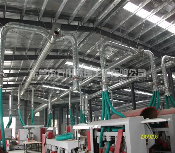 該系統(tǒng)的風管為不銹鋼材質,法蘭連接,部分風管架空在生產機器上方。